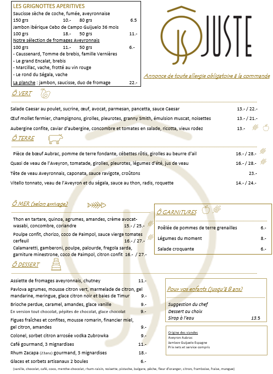 Nos plats de la carte évoluent régulièrement, il est donc possible que le menu soit différent lors de votre visite au restaurant.